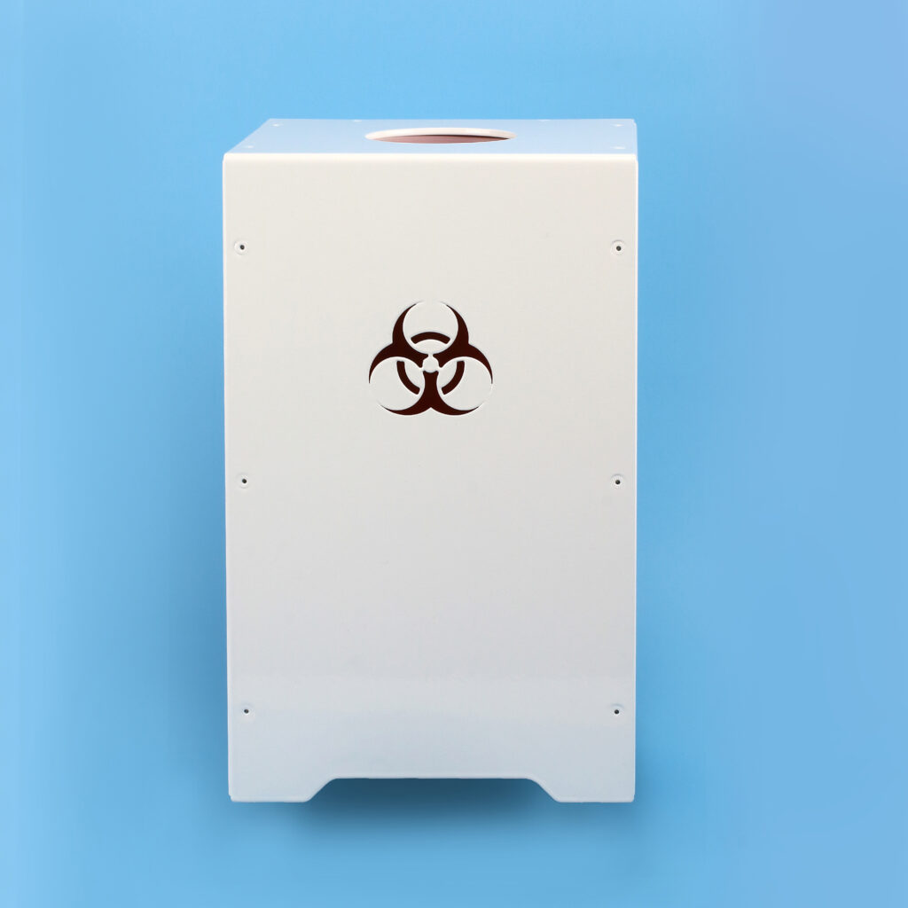 Our container covers are currently available in two colors and three sizes. Choose needle disposal box covers in a Hardcoated Glacier White or Grey Steel finish in 1-quart, 1.5-quart, 2-quart sizes.